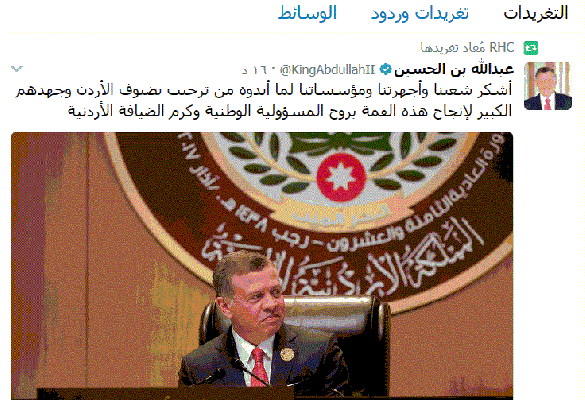 عبر تويتر :الملك يشكر أبناء الشعب الأردني