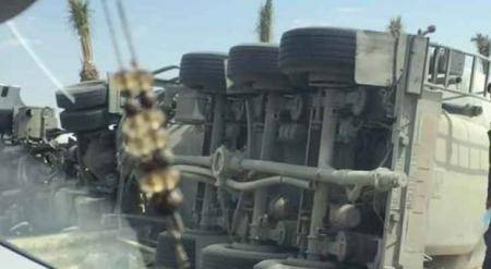اصابة بانقلاب صهريج محمل بالإسمنت على الطريق الصحراوي (صور)
