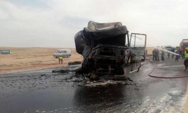 إحتراق صهريج محروقات على الطريق الصحراوي (صور)