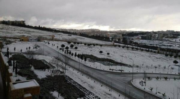 تساقط للثلوج بحي نزال بالعاصمة عمان
