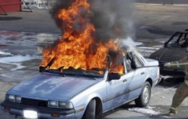 مواطن يشعل النار في مركبته بسبب مخالفة سير(فيديو)