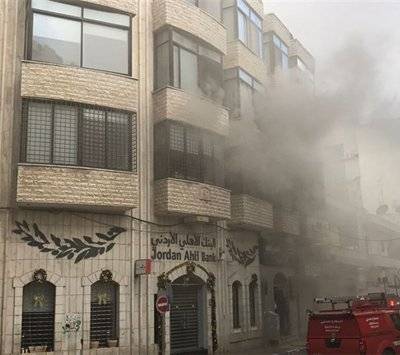 حريق في البنك الأهلي الاردني برام الله