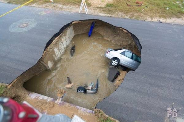 توفيت فيها ضابطة شرطة .. حُفرة تظهر فجأة وسط طريق بولاية تكساس وتبتلع سيارتين!