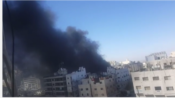 حريق على دوار صويلح يغطي المنطقة بالدخان .. صور