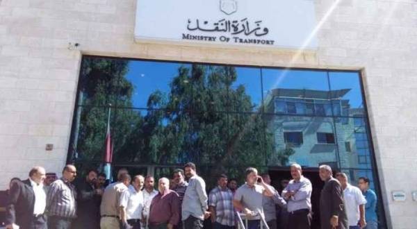 العشرات من اصحاب الشاحنات يعتصمون امام وزارة النقل .. صور