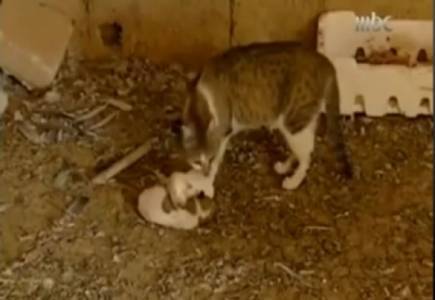قطة اردنية تلد كلبين.. شاهد فيديو الحادثة الاغرب بالعالم!