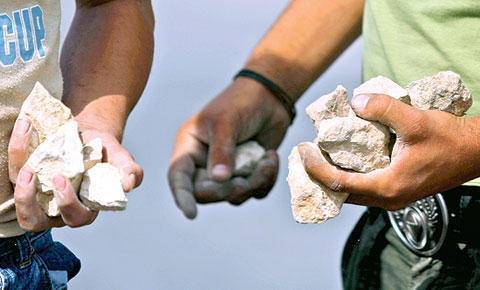 بالحجارة وقطع السجاد.. بلدية إربد تتعامل مع إغلاق متعمد لقناة تصريف مياه في حي التركمان