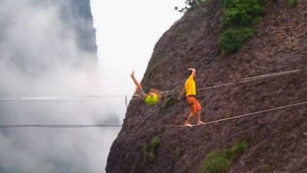 بالفيديو: سباق للمشي السريع على حبل ارتفاعه 400 متر في الصين