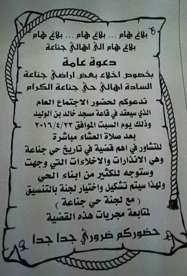 اجتماع هام وعام لأهالي جناعة مساء السبت