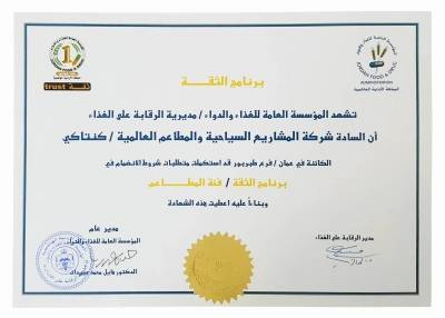 مطاعم دجاج كنتاكي تحصد شهادة برنامج الثقة من المؤسسة العامة للغذاء والدواء في الأردن