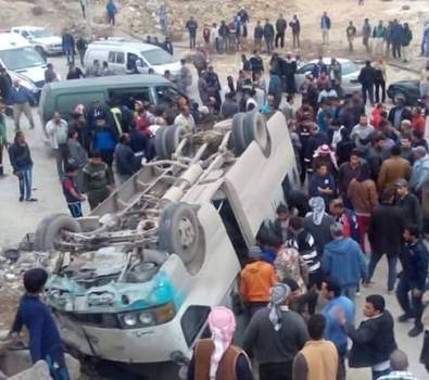 إصابة 21 شخصا في انقلاب باص "كوستر" ..