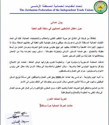 اتحاد النقابات العمالية الاردني يستنكر اعتقال الناشطين العماليين في اقليم العقبة