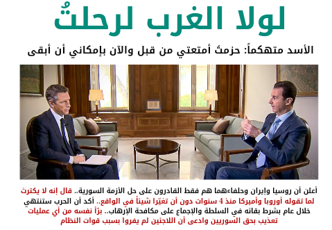 لولا الغرب لرحلت الأسد متهكماً: حزمتُ أمتعتي من قبل والآن بإمكاني أن أبقى التفاصيل: