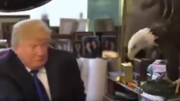 نسر ملقب بـ"العم سام" يعتدي على المرشح الرئاسي دونالد ترامب (فيديو)
