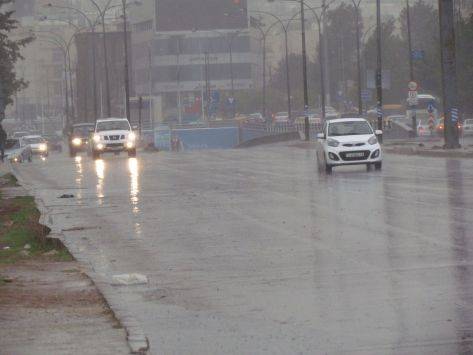 ارتفاع منسوب المياه في بعض شوارع العاصمة عمان