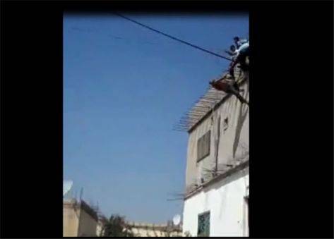 بالفيديو.. مطلوب ''يسقط'' من سطح منزل أثناء مطاردة أمنية