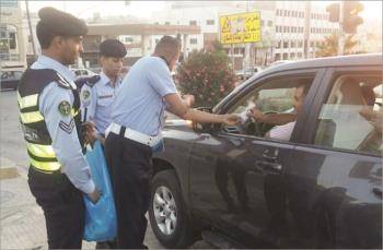 ضباط إدارة السير يوزعون الطعام على السائقين ..