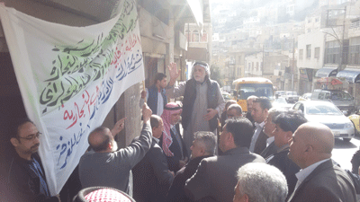 بالصور : اعتصام تصعيدي لتجار مدينة السلط امام مبنى غرفة التجار