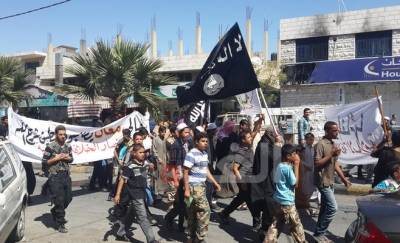 غالبيتهم اطفال وحديثي السن .. مسيرة باهتة تحيي "داعش" وترفع راياته في معان