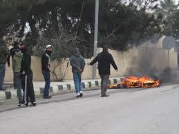 الطفيلة ... عاطلون عن العمل يحطمون زجاج البلدية ويشعلون الاطارات للمطالبة بتشغيلهم ..شاهد الصور