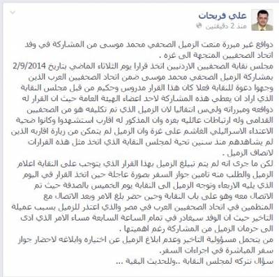 الزميل فريحات يتساءل عن منع الموسى من زيارة غزة.؟؟
