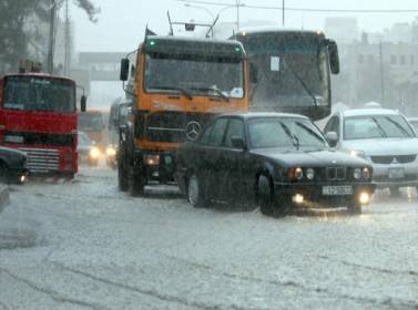 جرش: تساقط كثيف للبرد والأمطار والطرق سالكة