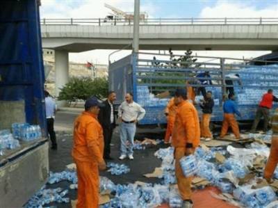 بالصور.. انقلاب شاحنة محملة بالمياه على ''تاكسي''