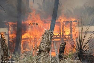 حريق ضخم في مزرعة أبقار لمصانع شركة طيبة للألبان بالضليل
