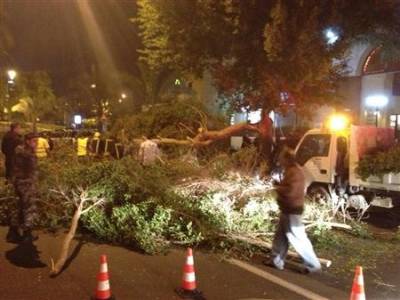 الرياح تسقط شجرة بوسط شارع في العقبة