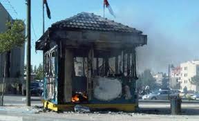 محتجون يغلقون طريق عمان مأدبا الشرقي بالإطارات وإحراق كشك للشرطة