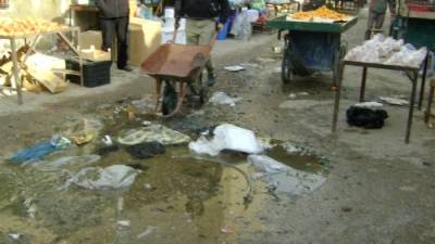 فيضان المجاري في سوق الخضار بإربد (صور وفيديو)
