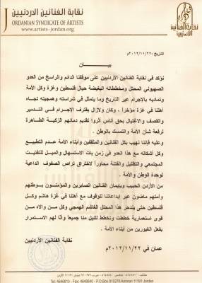 "الفنانين" تؤكد موقفها الرافض للتطبيع