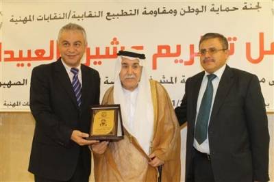 "النقابات" تكرم "العبيدات" لتبرئها من نجلها السفير لدى إسرائيل