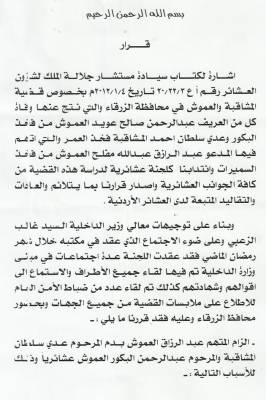 "المشاقبه" يصدرون بيانا على أثر قضية العموش والمشاقبه