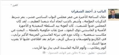 الشقران: مجلس النواب "المنحلّ" كان عدوا للشعب وألعوبة بيد الأجهزة الأمنية و أكبر جرائمه الكازينو و سكن كريم