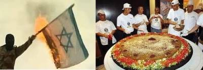 انجازات عربية خارقة : أكبر سيخ شاورما وحبة فلافل .. وحرق علم اسرائيل اسبوعيا ..
