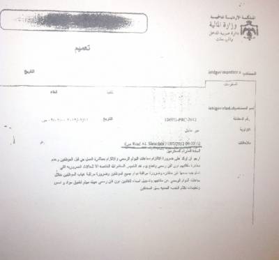 موظفو الدائرة العامة يعتصمون غداً ويقولون ان المدير العام اصدر تهديداً على شكل تعميم بأمر من وزير المالية