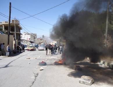 سكان بشرى اربد يغلقون الطريق المؤدية للرمثا عبر اربد عبر حرق الاطارات