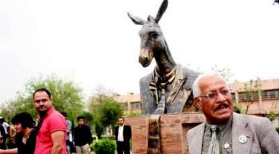 "حزب الحمير" العراقي يبني تمثالاً لحمار بربطة عنق..رئيس الحزب:هذا اليوم يذكرني بيوم زواجي