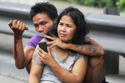 رجل يضع السكين على رقبة زوجته لساعات في أحد شوارع بانكوك