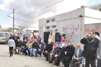 رجال يحرسون مدخل مدرسة بالرمثا للحيلولة دون تحرش الشبان