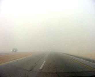 الرياح والغبار يوقفان حركة السير على الطريق الصحراوي