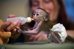 امرأة تتبنى قردا صغير بعد ان رفضت أمه الاعتراف به " صورة "