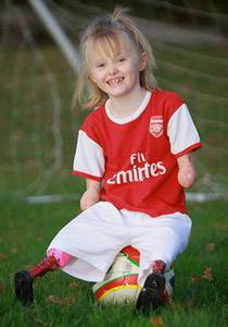 طفلة مبتورة الارجل والايدي تنضم لفريق كرة القدم بمدرستها!! صور