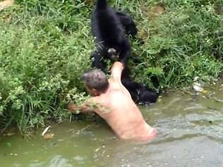 قرود تؤدب سكيرًا اقتحم خلوتها بحديقة حيوانات " شاهدوا فيديو "