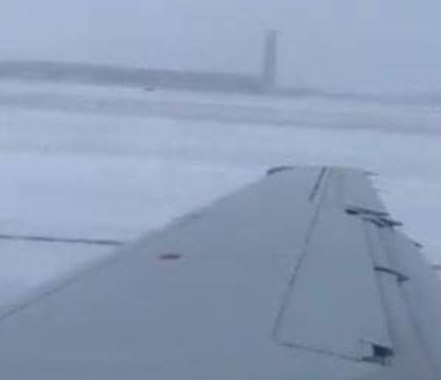 بالفيديو .. حادثة غريبة من نوعها ثلوج تتلاعب بطائرة لحظة هبوطها
