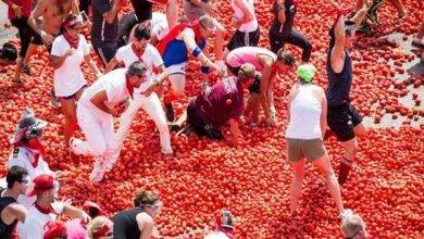 شاهد.. 20 ألف إسباني يتراشقون بـ145 طنا من الطماطم