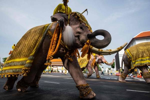 شاهد..عرض للفيلة احتفالا بتتويج ملك تايلاند الجديد