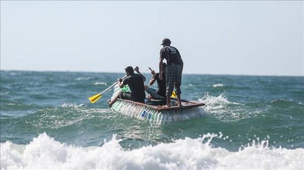 ليصطاد رزق عائلته في غزة.. فلسطيني يبحر على 700 عبوة بلاستيكية