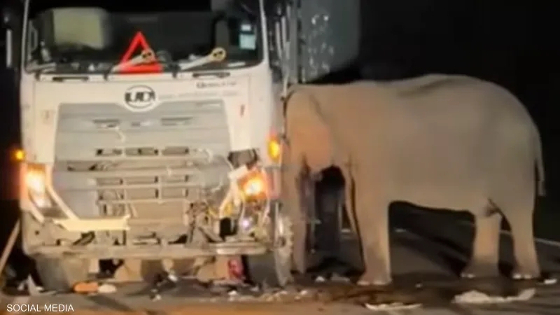 أنثى فيل "تنتقم من شاحنة" دهست صغيرها وقتلته
